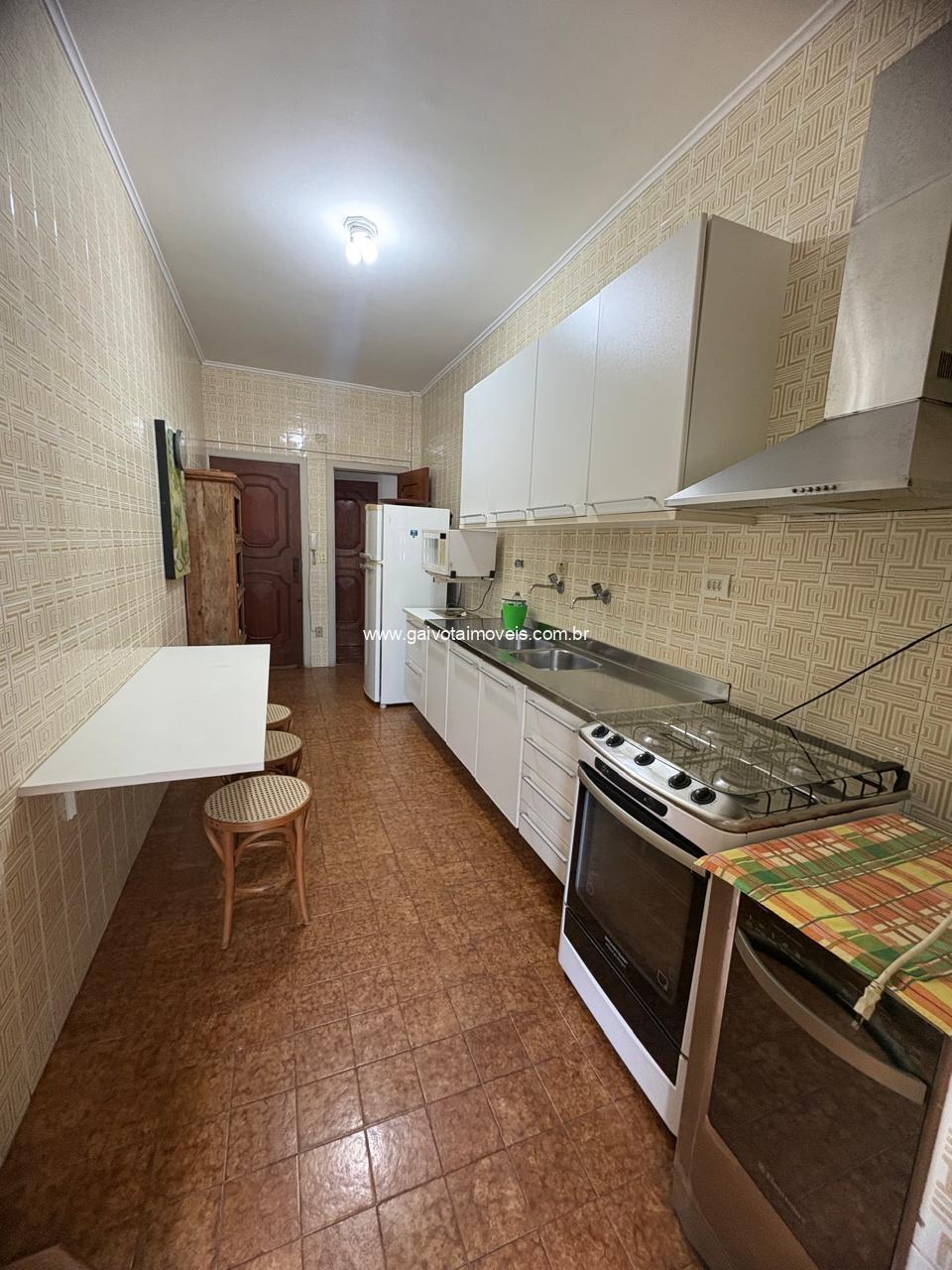 Apartamento de 3 quartos, sendo uma suíte, dependência de empregada com banheiro, banheiro social, sala, cozinha, area de serviço, sacada, garagem, piscina, área gourmet, churrasqueira, começo da Enseada, perto de mercados, farmácias, bares e lanchonetes.